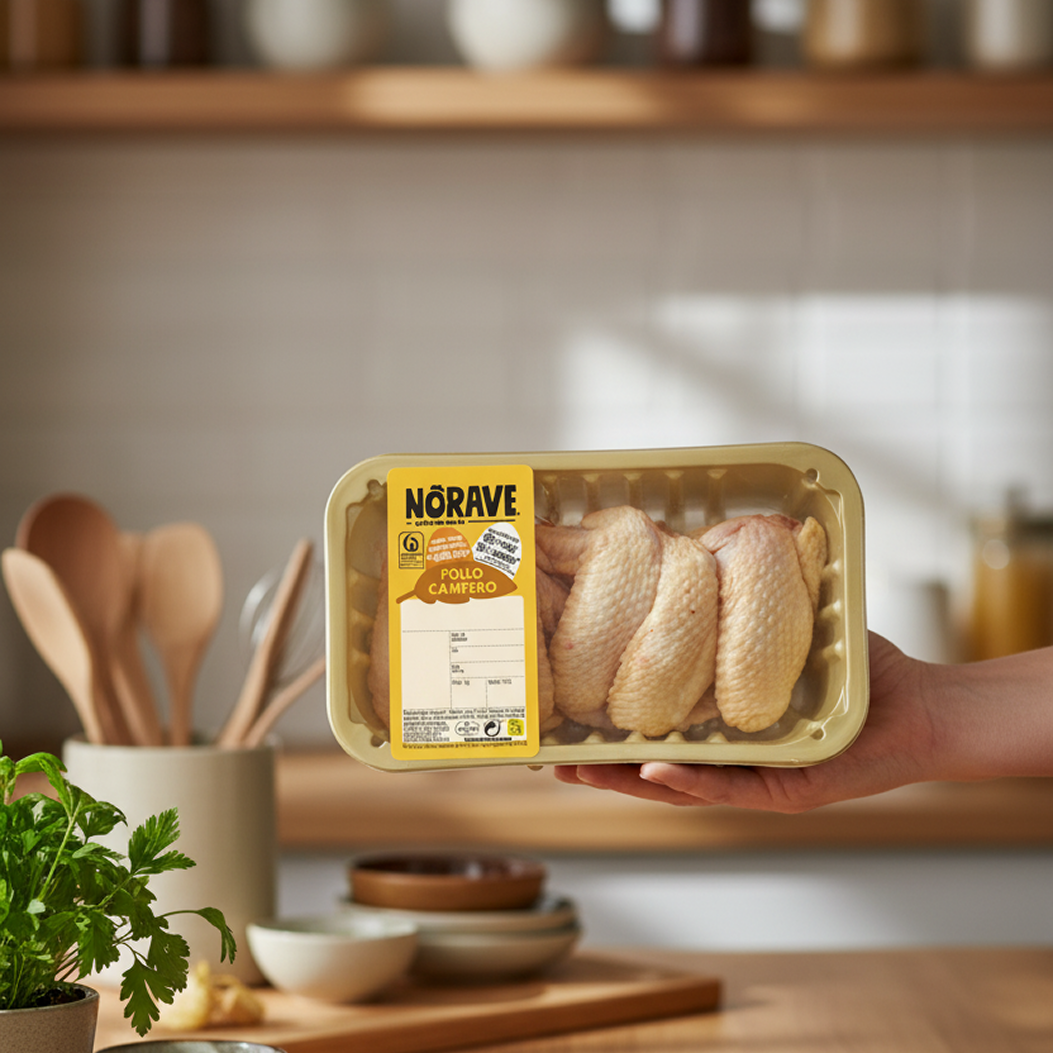 Para Norave, la calidad empieza en el origen: Cariñena, Aragón. Nuestro Pollo Campero se cría con tiempo y dedicación en gallineros con salida libre, permitiendo que el campo sea parte esencial de su crecimiento. El bienestar animal, el respeto por el entorno y una alimentación basada en un 50% de maíz y un 70% de cereales se reflejan en un producto de sabor auténtico y una calidad destacada que sorprende desde el primer bocado.